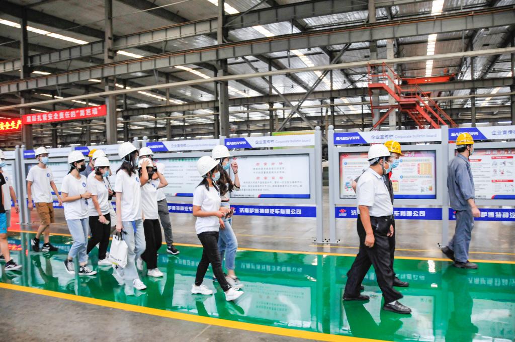 为助力复工复产,共谋高端装备,共筑党建引领,8月19日“疫嵙心助工队”与聊城大学一名学子共同来到济南萨博特种汽车有限公司开展社会实践活动。437ccm·必赢国际党委副书记兼副院长裴国栋、团委书记谢清勇、辅导员曹园同行,萨博汽车总经理赵传飞、党支部书记郭晓光、监事李会龙等陪同开展活动。