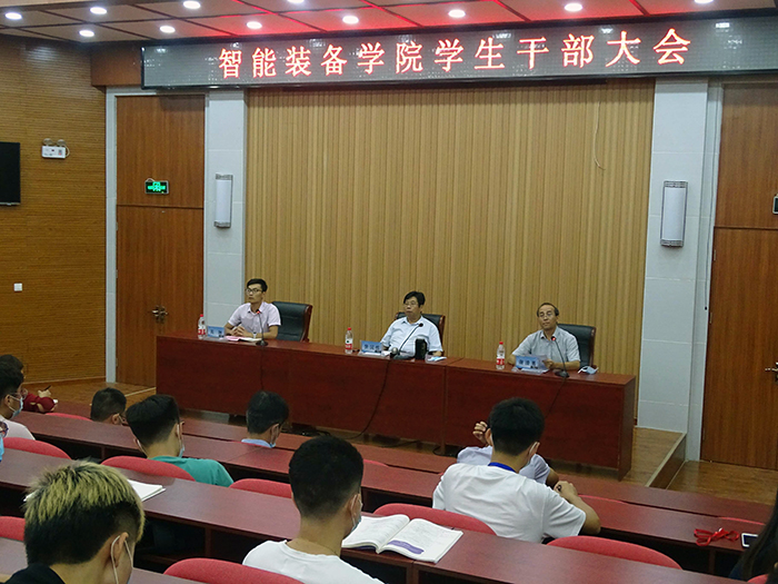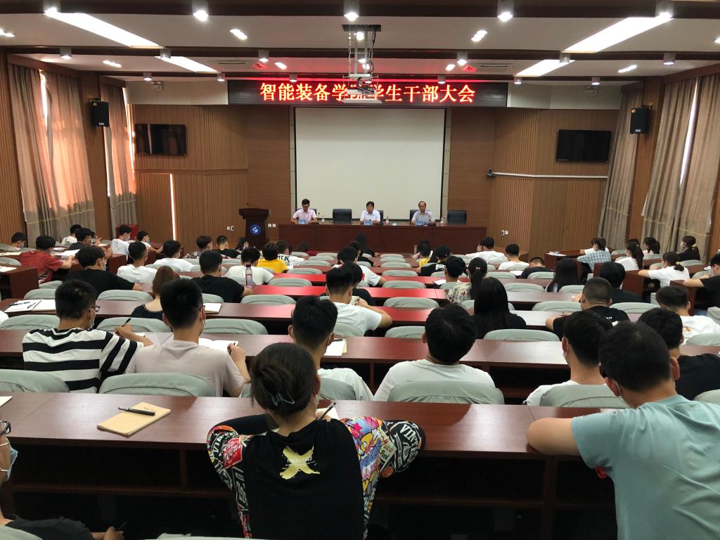 为进一步落实学校、校区新学期有关工作的部署和安排,进一步提高智能装备学院学生干部的综合能力,增强学生自我教育、自我管理和自我服务意识,8月29日,智能装备学院先后在东校园1号楼报告厅及西校园八角楼召开学生干部大会。学院党委副书记兼副院长裴国栋,学生工作办公室主任、团委书记谢清勇,全体辅导员、学生会主要干部、班级班长和团支书参加会议。大会由学院学生工作办公室副主任、团委副书记高琳主持。