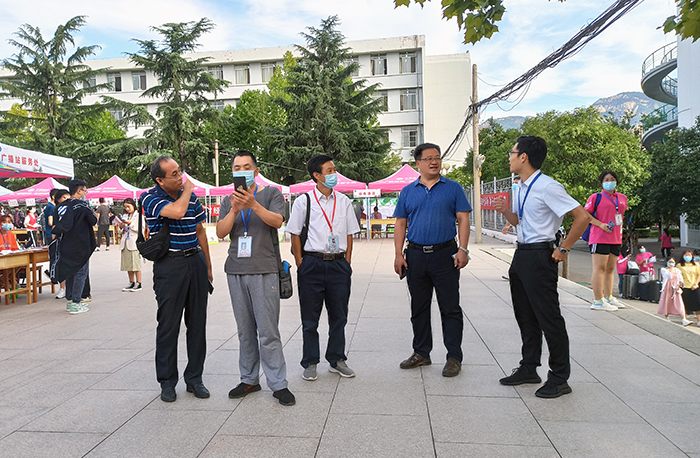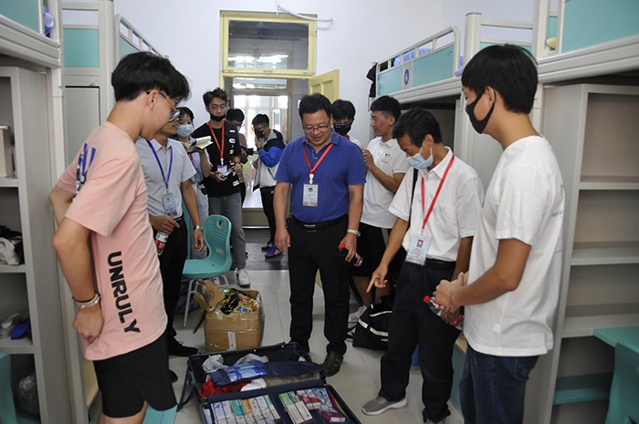 学院领导在检查走访过程中深入到新生咨询点、绿色通道办理点、新生宿舍、学校饮食中心等迎新工作处了解迎新工作具体情况,检查指导迎新接待各项工作。在新生咨询点,学院领导与迎新工作人员亲切攀谈,详细了解学院各部门迎新工作进展和新生报到情况,对学生志愿者周到细致的服务给予充分肯定,对他们的辛勤付出表示感谢,学生志愿者们得到鼓励后更加充满干劲。随后,学院领导一行来到新生宿舍楼查看新生住宿环境和新生入住情况,亲切地与新生交谈,为新生答疑解惑,提醒新生注意人身、财产、网络的安全,提高安全防范意识,并强调相聚一起便是缘分,一个宿舍之间要相互理解,相互包容,共同携手走过大学四年。
