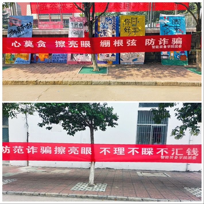 各年级辅导员分批次召开校园防诈骗主题教育班会,带领同学们学习了解了电信诈骗的常见形式,用真实案例警醒同学们在生活中要做到遇事冷静分析、警惕诈骗分子、提防诈骗犯罪。同时,学院也积极开展预防校园电信诈骗主题宣传活动,通过悬挂横幅、手抄报大赛、防诈骗联合签名等活动提高同学们的防范意识。
