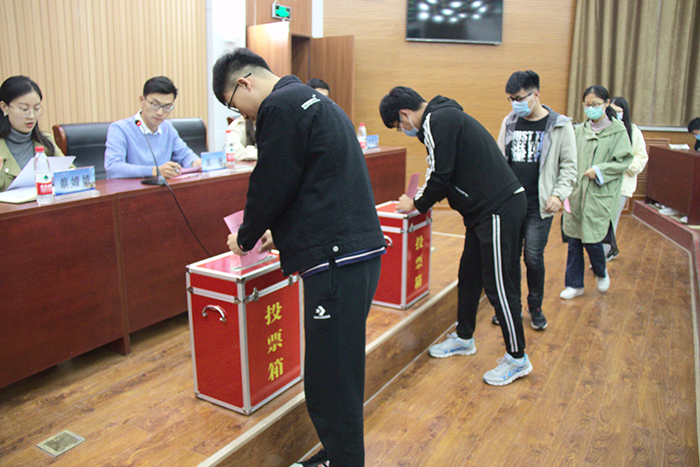 会议伊始,高琳、周立志宣读了学生代表候选人名单及选票填写说明,并强调广大学子务必要充分认识代表选举的重大意义,全体学生要坚持正确政治立场,把握原则,以大局为重,正确履行学生权利和义务。郭艳培、曹园介绍了第三次学代会代表、第一次研代会代表候选人情况。随后,工作人员清点了到会学生数量并发放选票,全体选举代表在填好选票后依次投入票箱。大会共有投票学生251名,选举产生学代会代表25名、研代会代表1名。