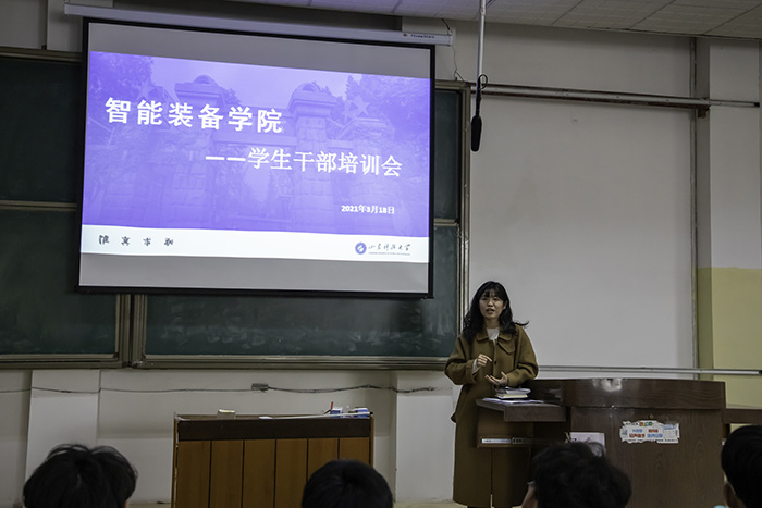 3月18日,437ccm·必赢国际于西校园3101召开学生干部培训会,辅导员韩晓旭为全体与会人员做了题为“奖励育人”的主题报告。