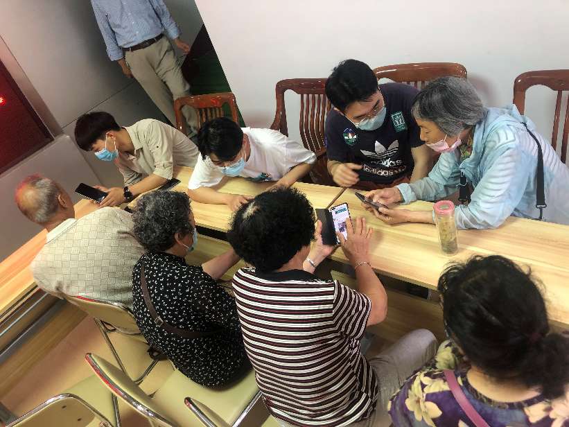 学院党员先锋岗的党员们手把手教离退休老教师们使用智能手机,为他们下载手机应用,教给他们微信语音、视频,浏览新闻网站和观看视频等功能。学生党员对当下网络流行语用用朴实易懂的语言讲述给老教师们。离退休老教师们对学生党员的服务非常满意,感受到了学生党员们的年轻活力和朝气,学到了最新的实用知识。在联谊活动中,学生党员愉快的为老党员们解释什么是崇尚奋斗崇尚劳动的“996”、何为“硬核”“yyds”等新兴网络语言。