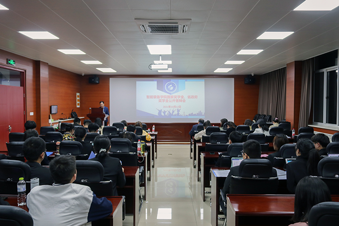 10月12日,437ccm·必赢国际于东校园2号楼201会议室举办国家奖学金、省政府奖学金申请答辩会。学院团委书记谢清勇,团委副书记周立志、曹园及全体辅导员、学生代表出席答辩会并担任评委,答辩会由周立志主持。