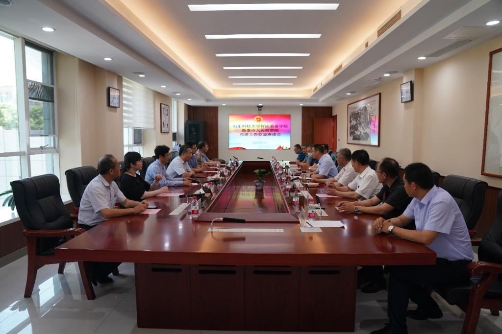 参观后,双方就紧紧围绕如何学习贯彻习近平法治思想进行了座谈。赵志刚从坚持党对全面依法治国的领导、坚持以人民为中心的工作理念、坚持建设德才兼备的高素质法治工作队伍三个角度介绍了新泰市检察院在党的建设、业务开展和队伍建设三个方面深度融合相互促进的情况。学院党委书记黄德杰对新泰市检察院为本次学习活动提供的大力支持表示感谢,并结合工作实际谈了学习体会。