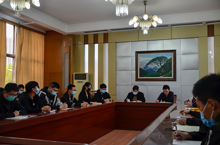 初始,孙斌向同学们介绍了召开本次座谈会的目的。他说,希望通过本次班级座谈会,架起班级31位同学与学院领导加强联系与沟通交流的桥梁,以便让学院及时了解同学们的学习状态和生活情况;记录解决同学们在学习和生活过程中遇到的问题和存在的困惑,进而有针对性地引导同学们明晰大学生活规划和未来人生方向。