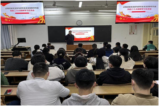会上,各支部书记带领与会党员共同学习了党的二十大精神,领悟党的二十大提出的新思想、新论断,明确新时代下作出的新部署和新要求,回顾党和国家过去五年的工作和新时代十年的伟大变革,从中感悟党和国家的精神力量。随后,各学生党员主动上台相互分享自己的学习方法和心得,表明自身继续挖掘党的二十大精神特质的决心和信心。各教工党支部代表则结合自身求学和执教的经历,与大家分享学习宣传贯彻党的二十大精神的感悟与体会,并以老党员的身份向学生们解答未来求学以及考研就业上的问题和困惑,鼓励大家要深入领会理解和把握习近平新时代中国特色社会主义思想的关键,明确新时代党员的思想要义,学习理解习近平新时代中国特色社会主义思想的世界观和方法论,把握实质、统一思想、提高认识,学以致用,踔厉奋发、勇毅前行,切实把党的二十大精神转化为谋划发展的思路。