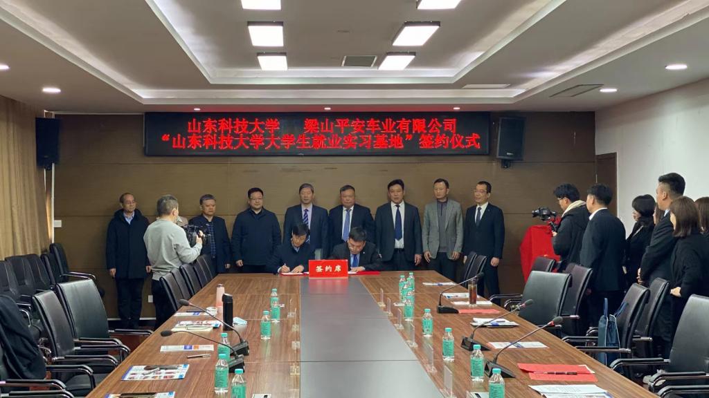 刘纪敏与秦于海代表双方进行签约,刘传玺与李来茵共同为梁山平安车业有限公司“大学生就业实习基地”揭牌。(文:蔡婧婧 图:437ccm·必赢国际)