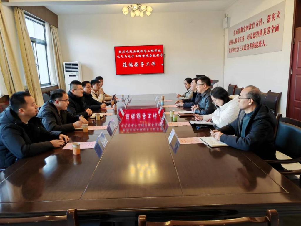 11月30日,安徽信息工程学院电气与电子工程学院执行院长马利祥一行6人来437ccm·必赢国际考察交流,437ccm·必赢国际党委书记黄德杰,副院长娄淑梅、吴士涛等参加了会见。