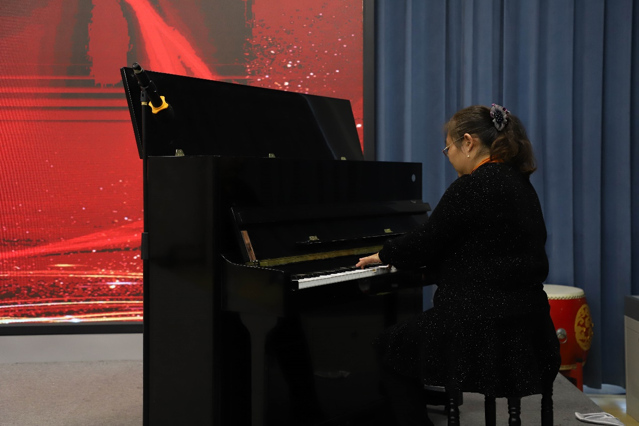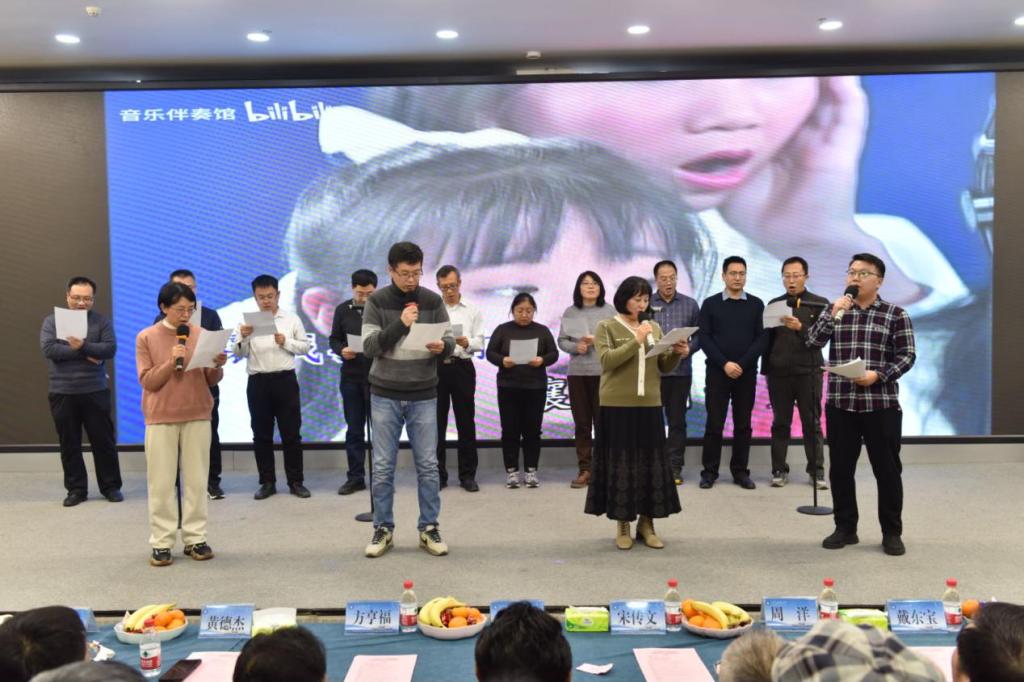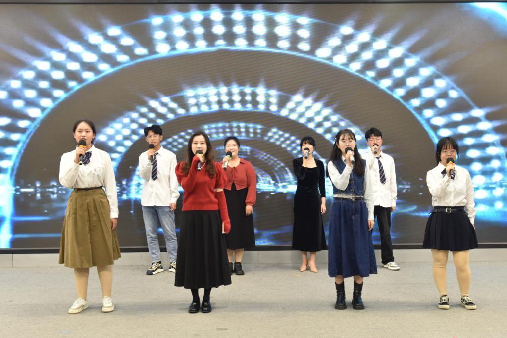 大会上,老师不再是三尺讲台上严肃认真的知识传授者,他们化身演员,在舞台上各显身手。歌曲《多情的土地》带我们领略了祖国的大好河山,回望2023年我们无比自豪;展望未来,我们信心百倍,满怀希望;钢琴独奏《水边的阿狄丽娜》婉转悠扬,仿佛穿梭于静谧幽深、水流潺潺的森林,给予人心灵的滋养;现场书法,以一句“两岸猿声啼不住,轻舟已过万重山”,联接古今智慧,以古文勉励今日,象征着学院2023年的工作圆满完成,为开启下一年度新征程开一个好头;朗诵《初心》,歌颂了老师们“不忘初心、牢记使命”的坚守;师生合唱歌曲《我们都是追梦人》,展现了学院青春一代的蓬勃生机与活力;大合唱《明天会更好》气势恢宏,歌声嘹亮,表达着对未来工作的美好憧憬。