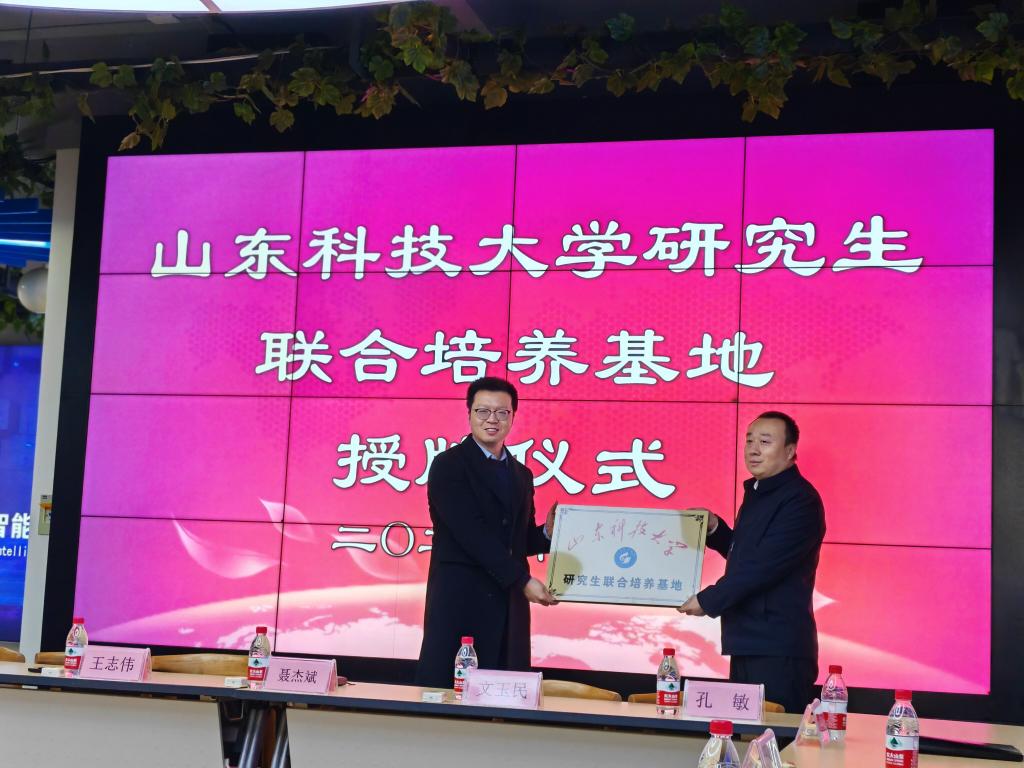参观结束后,学院和山东产研智能电机研究院有限公司、淄博祥龙测控技术有限公司举行研究生联合培养基地授牌仪式,仪式由淄川区科技局局长韩敬艳主持,淄川区科技局党组书记桑林和437ccm·必赢国际党委书记黄德杰先后致辞。黄德杰介绍了学校、校区和学院的基本情况,表示希望通过研究生联合培养基地的设立,促进校企在人才培养、专业共建、成果转化、学生就业等方面的深度融合。赵慧奇依次为两家企业授牌。