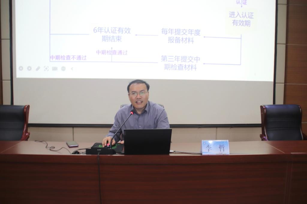 李哲作了题为“工程教育专业认证实施流程与申请”的报告。他通过深入解读工程教育认证流程总图的方式,结合专业认证工作经验,进一步清晰地为全体教师展示了专业认证工作的标准和具体实施过程,使与会老师对工程认证要做的具体工作做到心中有数。