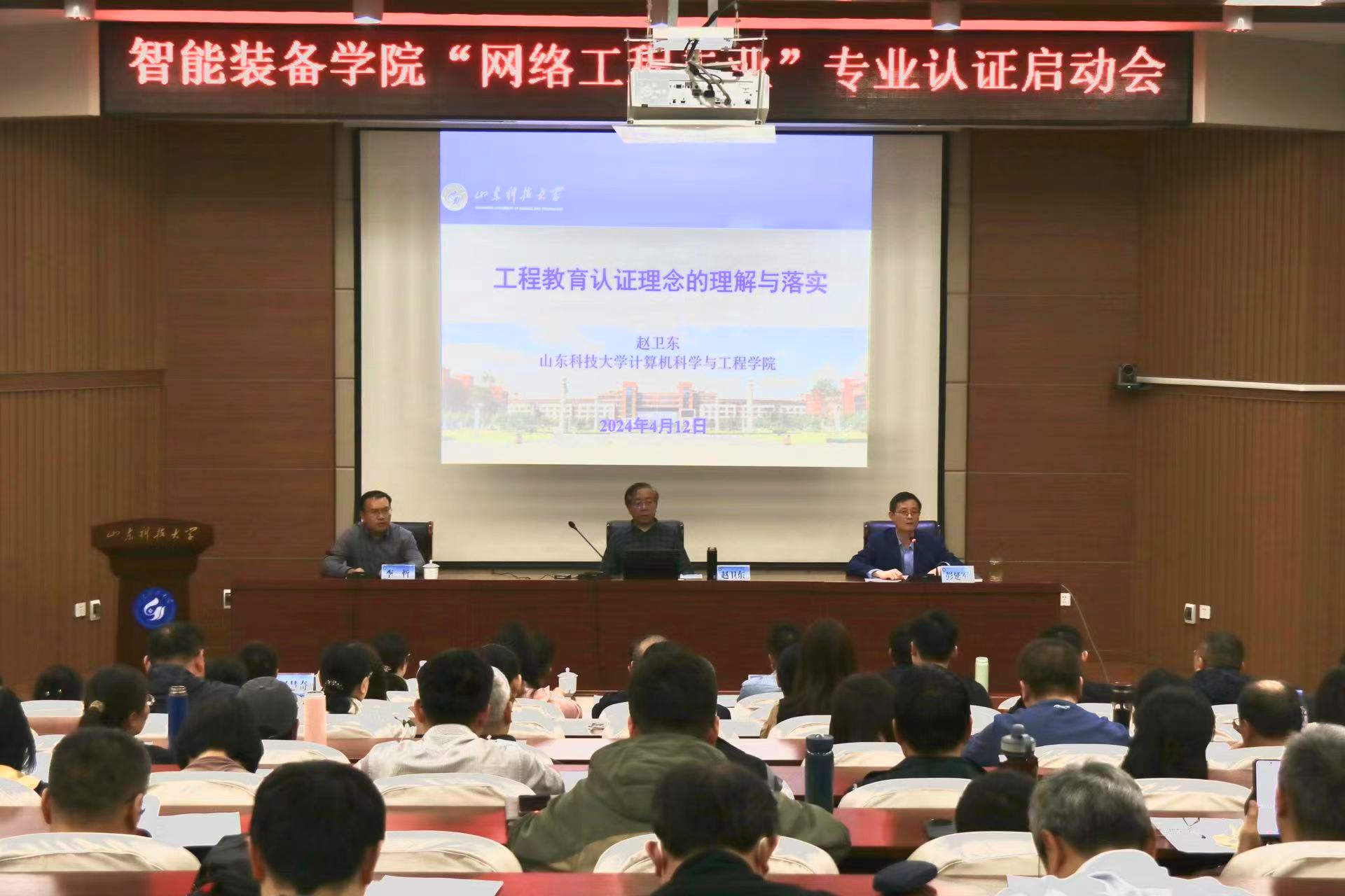 为推进学科高质量内涵式发展,4月12日,437ccm·必赢国际在东校园1号楼报告厅召开“网络工程”专业认证启动会,院长彭延军主持会议。会议特邀我校计算机科学与工程学院副院长赵卫东教授与物联网系副主任李哲副教授担任主讲,校区教务部副主任卢军、田建国,437ccm·必赢国际党委副书记兼副院长王衍国,副院长娄淑梅、吴士涛、赵慧奇以及学院全体教职工参加会议。