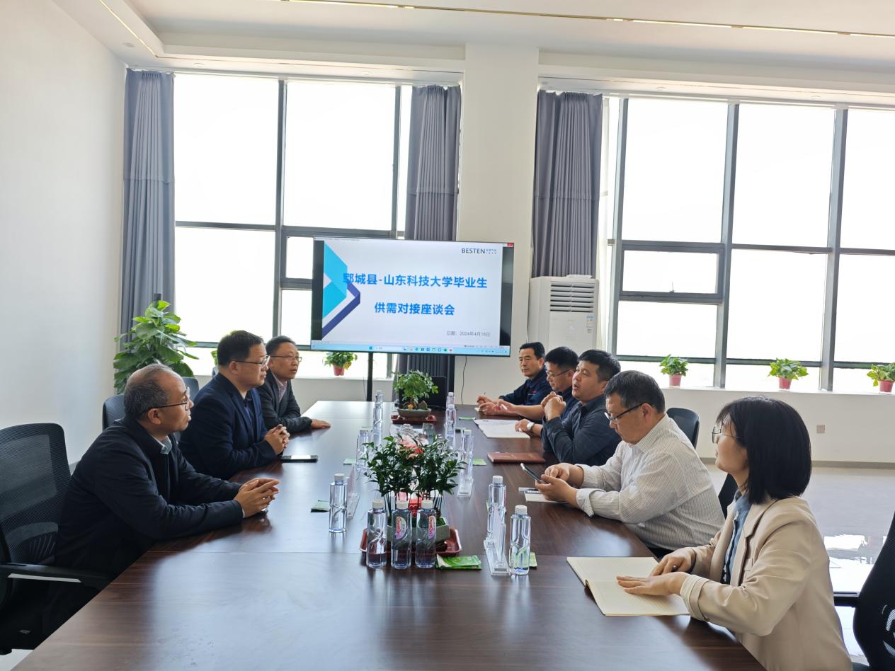 座谈会上,刘现综和郑国法对黄德杰一行表示热烈欢迎,并对各自企业的发展历程、主要产品、人才需求、发展愿景等方面进行简要介绍。王广希介绍了郓城县的企业发展状况以及人才引进的政策。