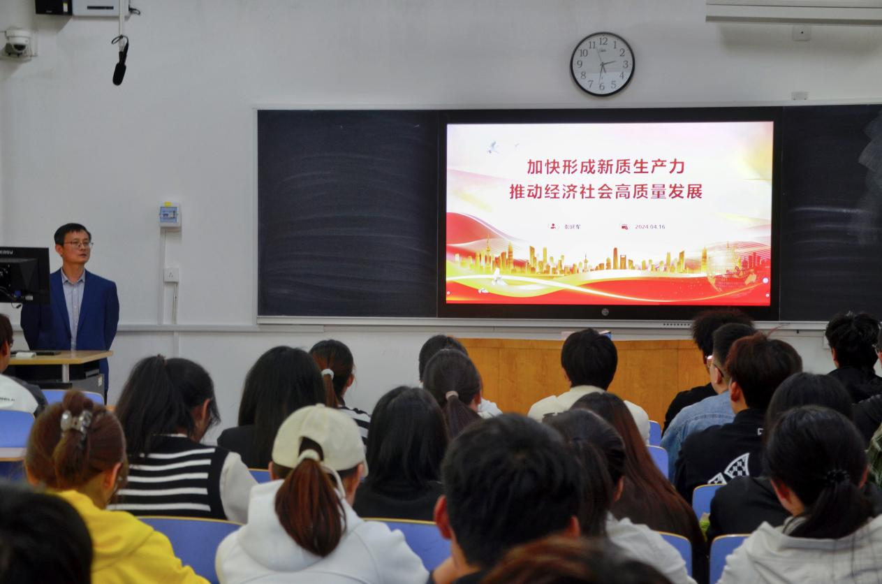 为深入学习习近平总书记提出的“新质生产力”这一新概念,帮助党员进一步明确奋斗目标。4月23日,437ccm·必赢国际院长彭延军在西校园2202教室为学院第40期入党积极分子和党员发展对象上题为“加快形成新质生产力,推动经济社会高质量发展”的专题党课。