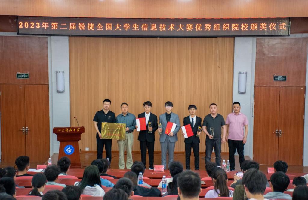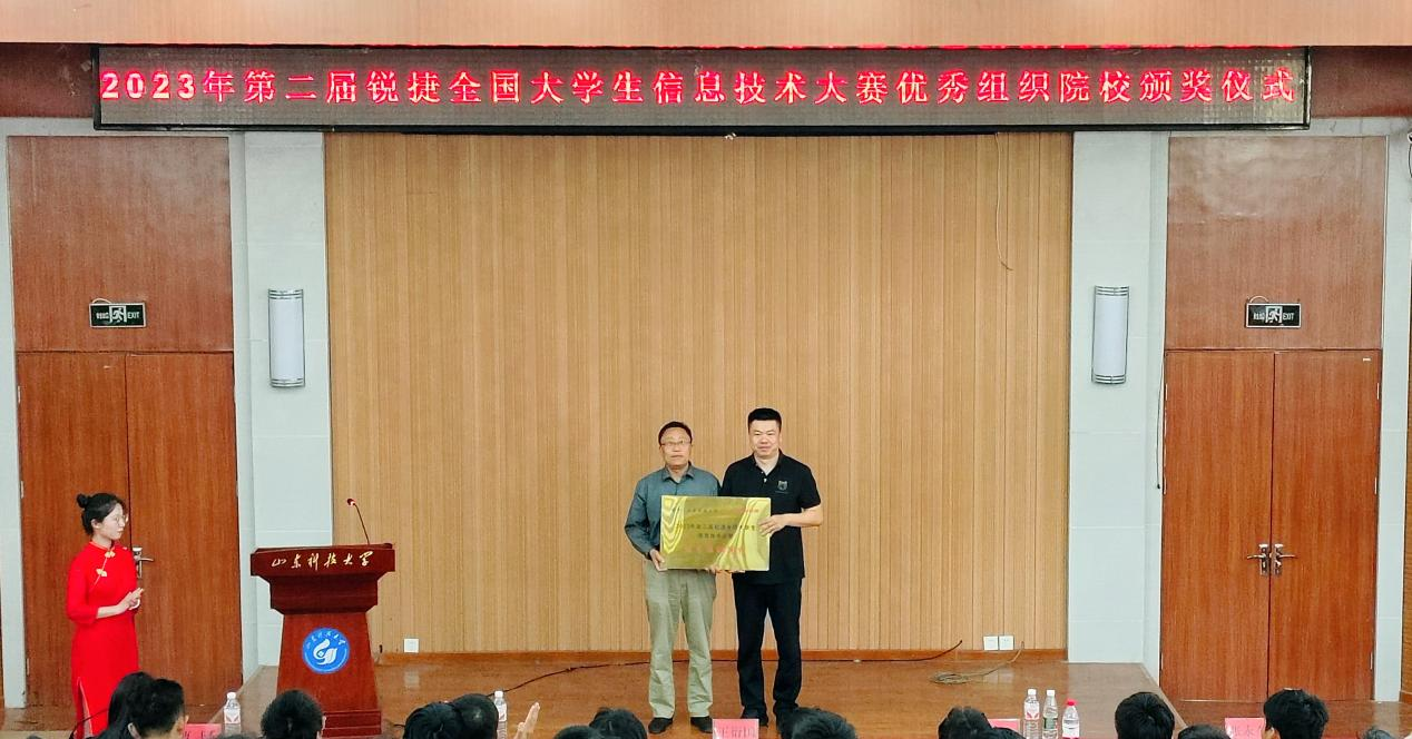 颁奖仪式伊始,曹园对第二届锐捷全国大学生信息技术大赛的参赛情况进行了介绍,大赛吸引了来自全国370多所高校,超过1900组选手报名参与,最终18组选手参加了最终决赛。其中437ccm·必赢国际的“墨涵队”荣获大赛一等奖的好成绩,孙旸老师获得优秀指导教师,同时437ccm·必赢国际连续两年获得优秀组织奖。学院党委副书记副院长王衍国、锐捷ICT人才教育中心负责人李健为获奖学生和优秀指导老师颁发了奖杯和荣誉证书。