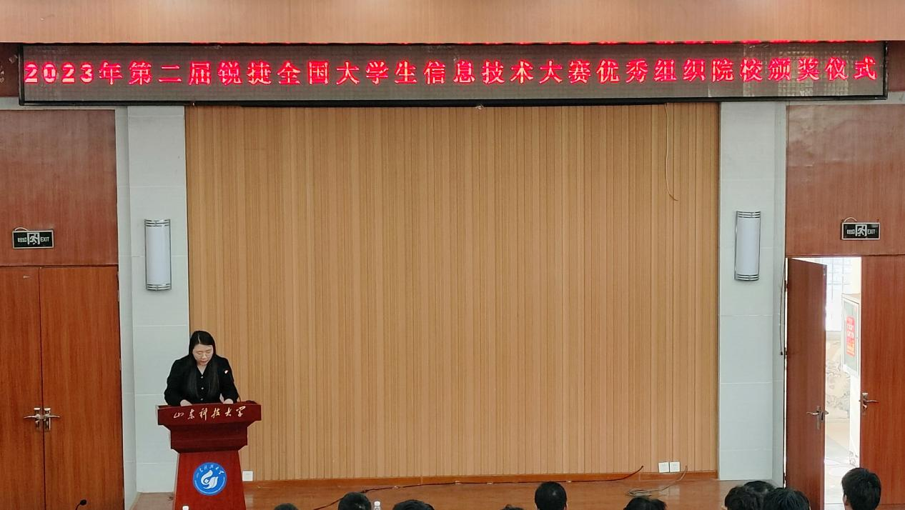 4月25日,437ccm·必赢国际在西校园八角楼举办第二届锐捷全国大学生信息技术大赛颁奖仪式。437ccm·必赢国际党委副书记兼副院长王衍国,锐捷ICT人才教育中心负责人李健、青岛尚文网络技术有限公司总经理李伟出席颁奖仪式。颁奖仪式由辅导员曹园主持。