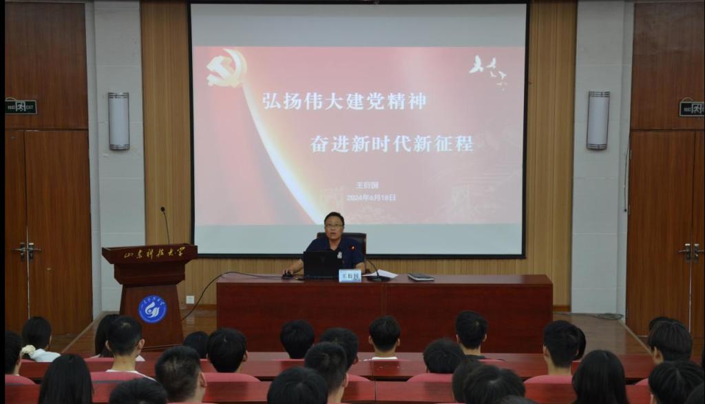 党课上,王衍国围绕中国共产党第二十次全国代表大会主题,结合自身的工作经历和感悟,详细地向在场党员介绍了党的基本知识、党的光辉历史和伟大建党精神,讲述了建党过程的艰辛以及伟大建党精神的形成。他强调,伟大建党精神,是中国共产党先驱在20世纪20年代探索救国救民道路中创造的宝贵精神财富,是马克思主义基本原理同中国具体实际相结合、同中华优秀传统文化相结合产生的宝贵精神财富,凝聚着中国共产党人的初心和使命,激励着中国共产党人不断开拓前行。随后他通过一个个鲜明的人物案例,阐述了伟大建党精神的内涵,并对同学们提出三点要求。一是继承和发扬伟大建党精神,承担起新时代赋予的历史使命。二是坚定理想信念,始终保持对党的忠诚,对人民的忠诚,对社会主义事业的忠诚。三是以实际行动践行党的宗旨,为实现中华民族伟大复兴的中国梦而不懈奋斗。