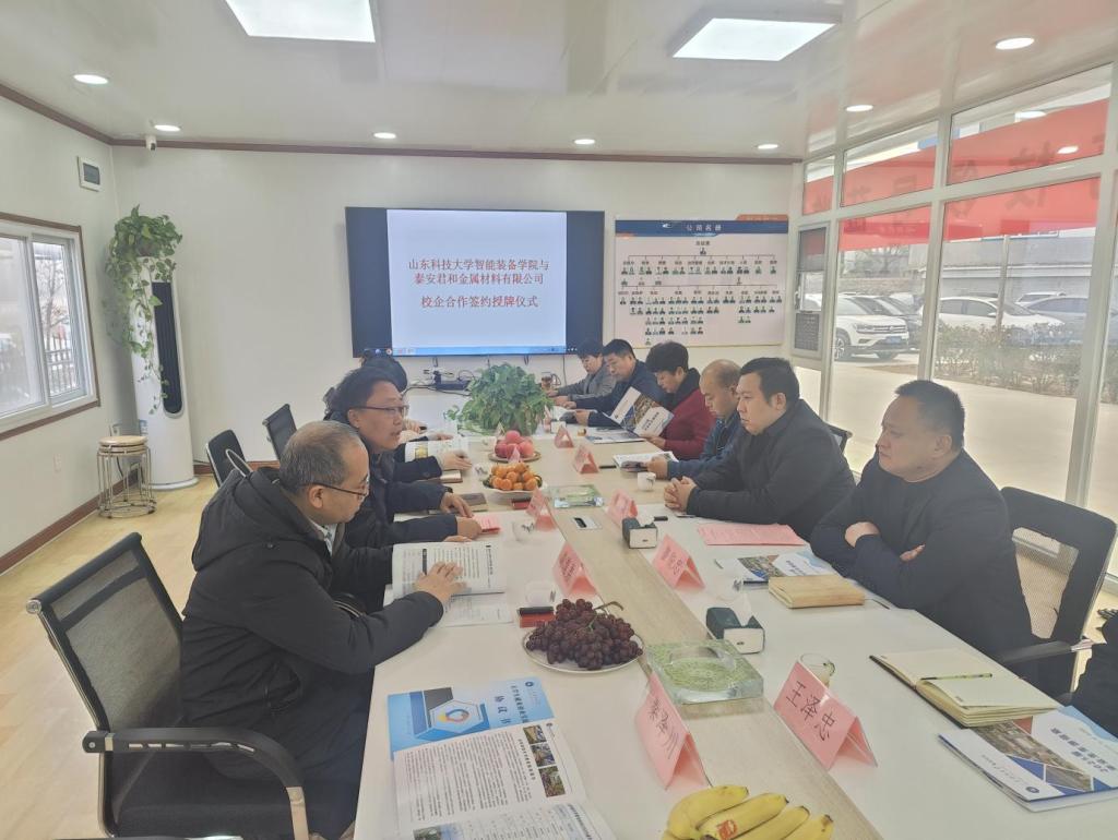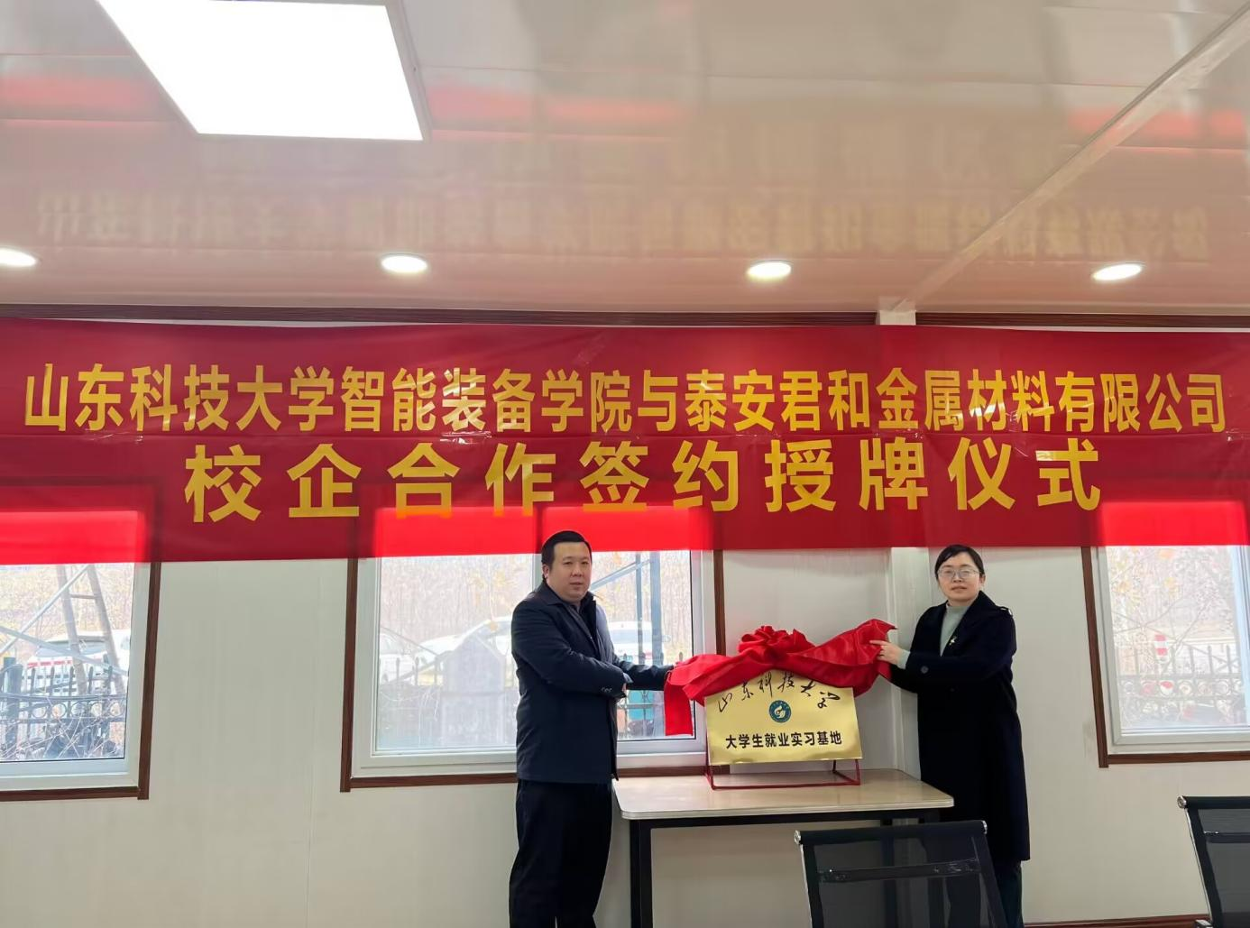 12月10日,437ccm·必赢国际党委副书记兼副院长王衍国、副院长娄淑梅、团委书记谢清勇一行5人到泰安君和金属材料有限公司进行访企拓岗并举行大学生就业实习基地签约授牌仪式。泰安君和金属材料有限公司总经理唐磊等接待了王衍国一行。