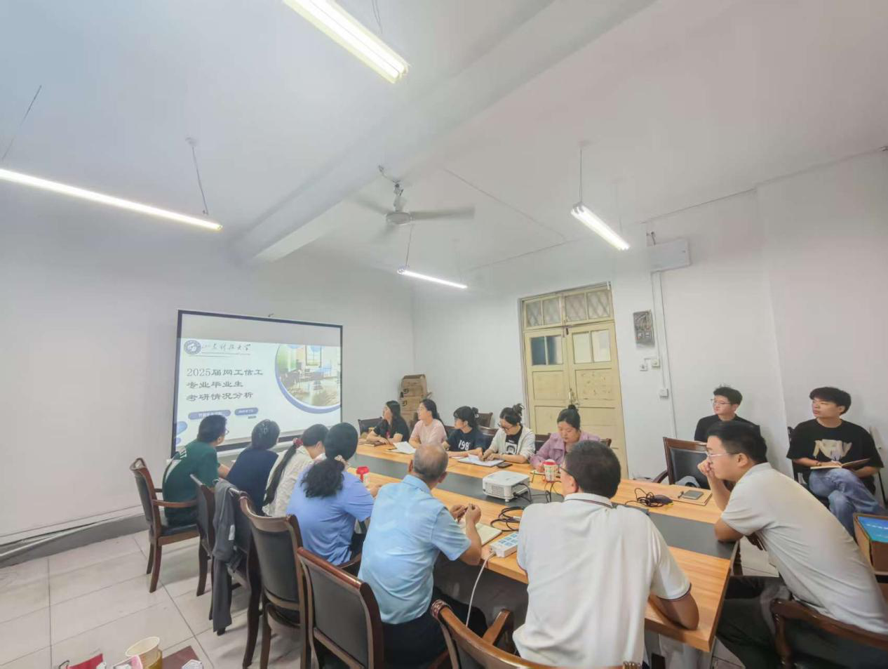 辅导员李明蔚、孙斌分别汇报了学院信息工程、网络工程专业2025届毕业生升学情况。通过详实的班级数据对比、班级差异解析、具体案例分享、深层次归因分析等,全面梳理并复盘了2025届考研工作的成效与不足,重点在备考期望、学术能力培养、心理支持体系以及转专业学生的管理与引导等方面,提出了改进思路。