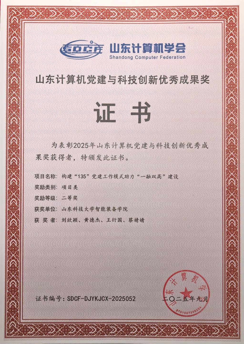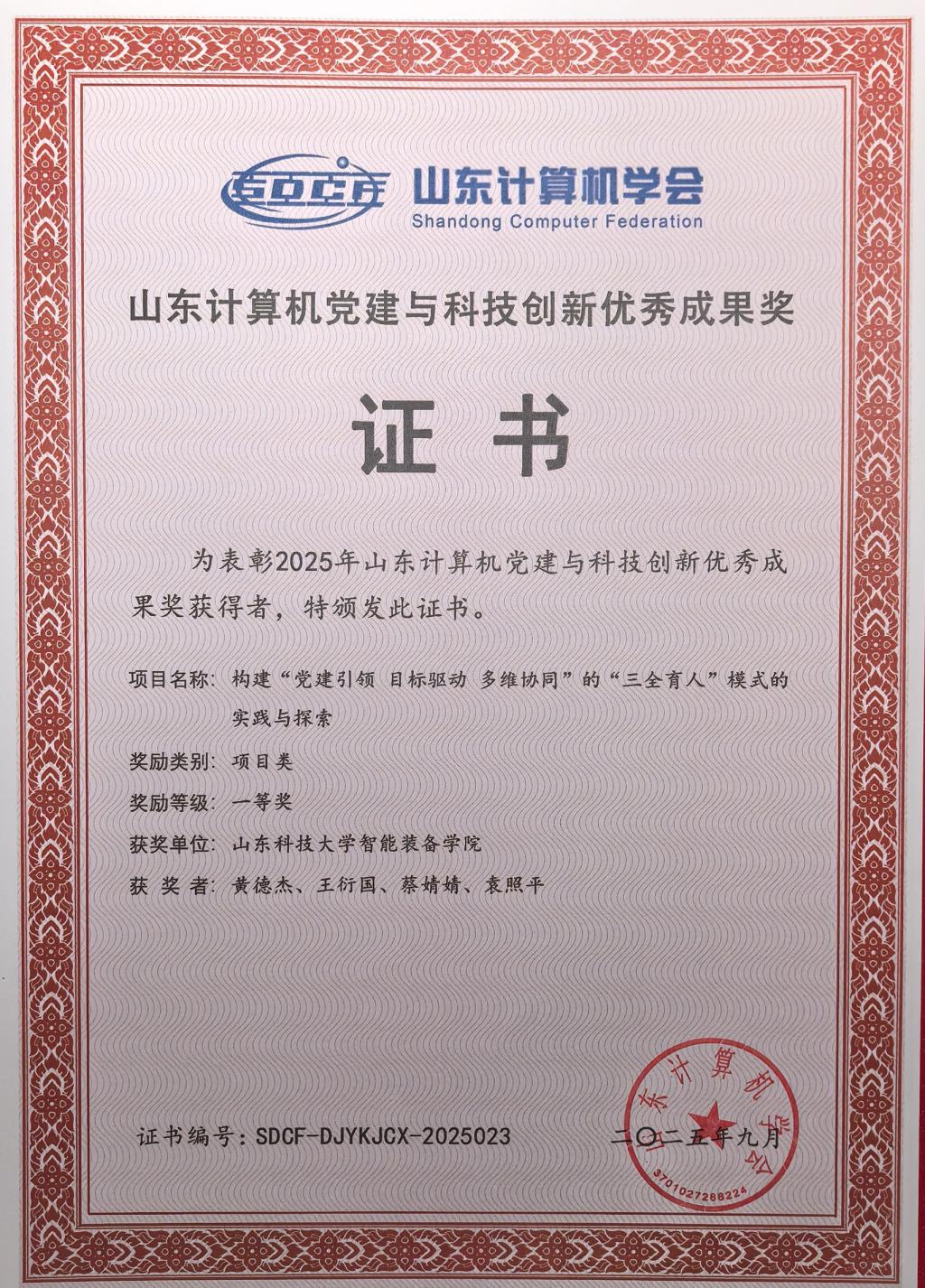 论坛上,对2025年山东计算机党建与科技创新优秀成果进行表彰。学院推报的《构建“党建引领 目标驱动 多维协同”的“三全育人”模式的实践与探索》获一等奖,学院网络与信息化党支部推报的《构建“135”党建工作模式助力“一融双高”建设》获二等奖。