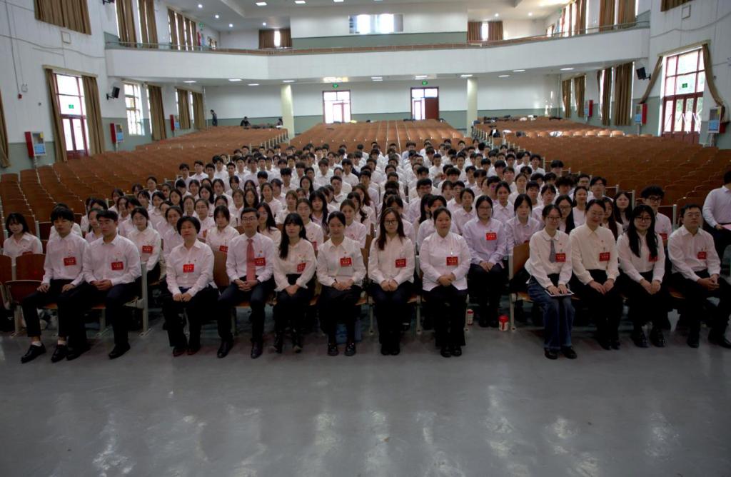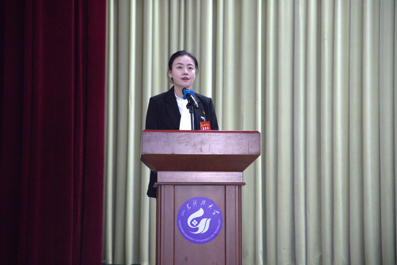 11月4日,共青团山东科技大学437ccm·必赢国际第一次代表大会在东校园礼堂隆重召开。学校团委副书记、泰安校区团委书记侯静娴,学院党委书记黄德杰、党委副书记兼副院长王衍国等,与共计235名团员代表共同参会。