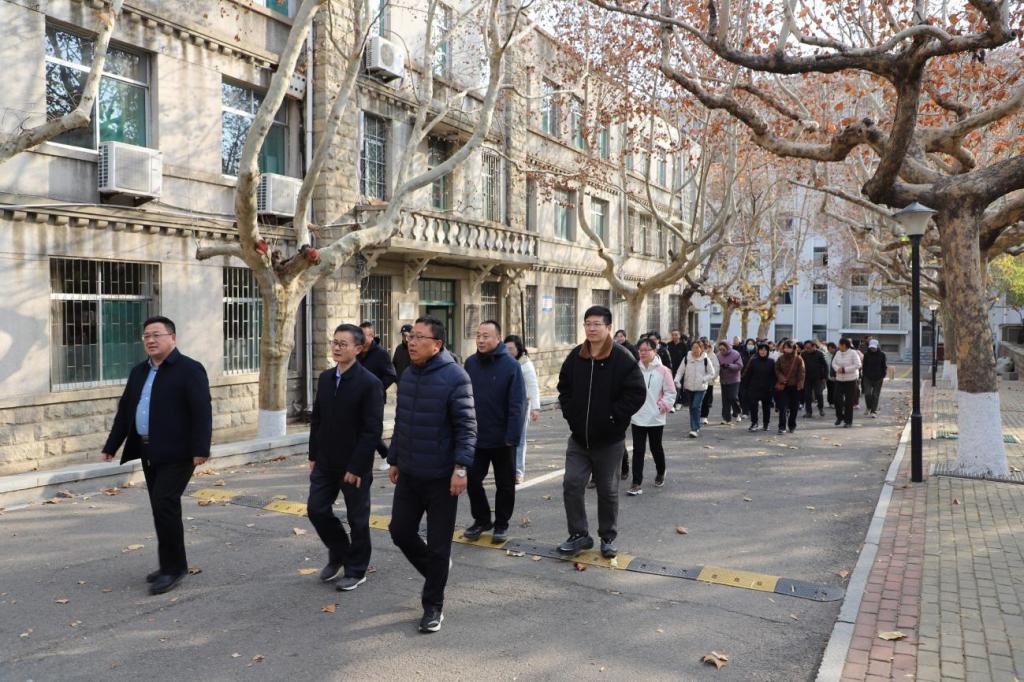 健步走起点设置在东校园南门,沿林荫道走完东校园。活动过程中,教职工们热情高涨、精神抖擞,有的三五成群并肩前行,畅谈工作与生活;有的相互鼓励、比拼速度;还有的驻足欣赏沿途美景,用手机记录下欢乐瞬间。途中,大家互帮互助、欢声笑语不断,形成了一道靓丽的冬日风景线。
