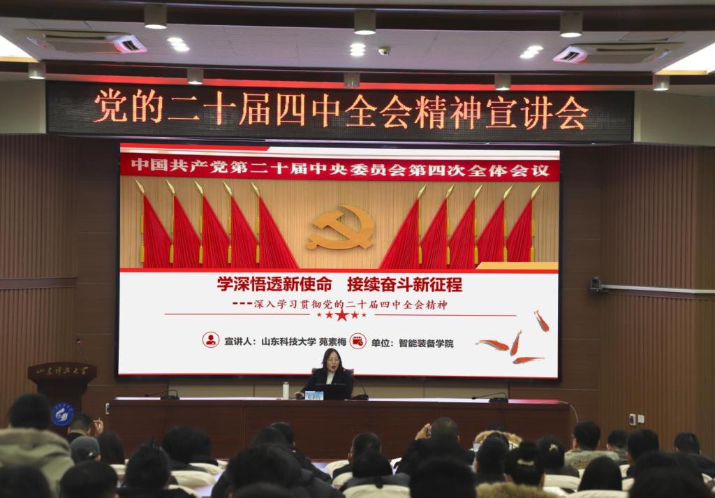 宣讲中,苑素梅教授围绕深入学习贯彻习近平总书记在党的二十届四中全会上的重要讲话精神和《中共中央关于制定国民经济和社会发展第十五个五年规划的建议》,结合鲜活案例与详实数据,系统阐述了“十四五”时期我国经济社会发展取得的重要成就,重点解读了“十五五”时期在中国式现代化进程中的重要意义、我国发展环境的基本特征以及未来行动纲领等核心内容。同时,她结合学校与学院实际,对贯彻落实党的二十届四中全会精神提出了针对性指导。
