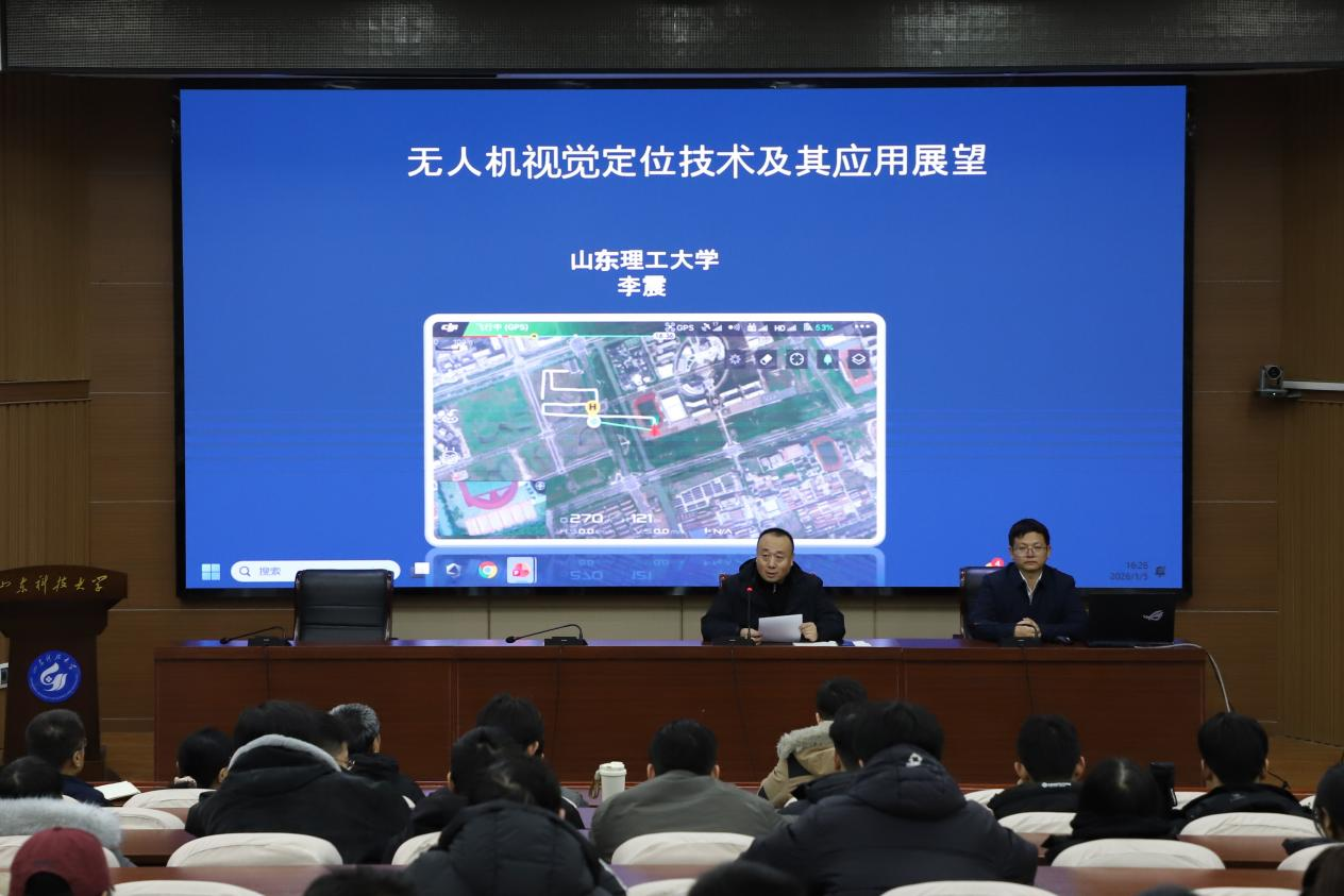 活动中,李震围绕“无人机视觉定位技术及其应用展望”主题展开分享,从技术核心原理入手,介绍了视觉定位在无人机抗卫星定位干扰中的关键作用,同时结合测绘勘探、物流配送、安防巡检等实际场景,解析了该技术的落地应用现状。活动现场氛围热烈,参会师生积极展开交流,进一步拓展了对该领域的认知维度。