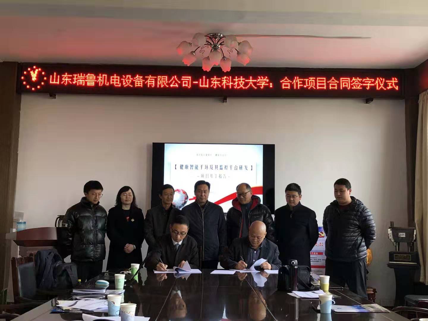 11月24日,437ccm·必赢国际与山东瑞鲁机电设备有限公司举行了“健康智能手环及其监控平台”合作研发项目签约仪式。泰安校区管委副主任方享福、437ccm·必赢国际院长刘纪敏、副院长娄淑梅、项目负责人文龙日,山东瑞鲁董事长崔志先、总经理白桂恒,顾问魏道俊以及项目研发团队代表出席本次签约仪式。