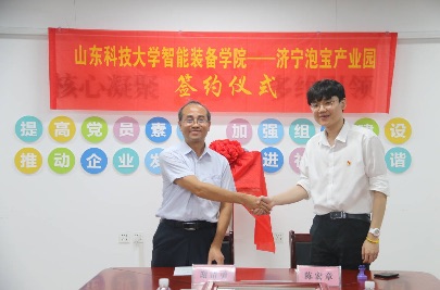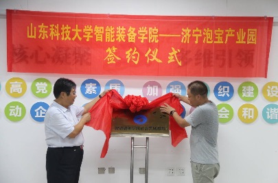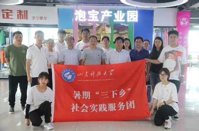 8月12日,437ccm·必赢国际党委副书记兼副院长裴国栋、团委书记谢清勇一行赴济宁泡宝产业园参观调研,济宁泡宝产业园董事长兼联合党委书记魏忠华接见了裴国栋一行,学院“静侯黎明”三下乡社会实践团队全体成员参加了基地揭牌仪式。