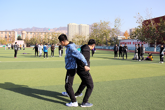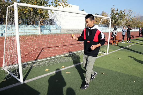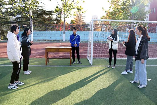 你画我猜,开动脑筋,舍友之间心有灵犀,通过动作、神情来表述成语意思,操场充满欢声笑语。