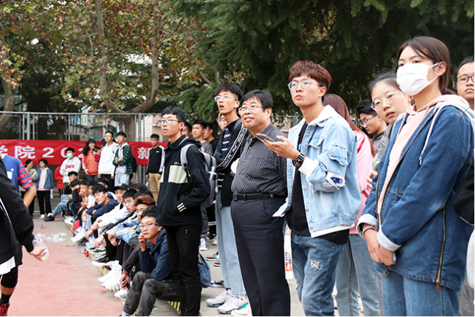 党委副书记兼副院长裴国栋与同学们一起观看赛事。