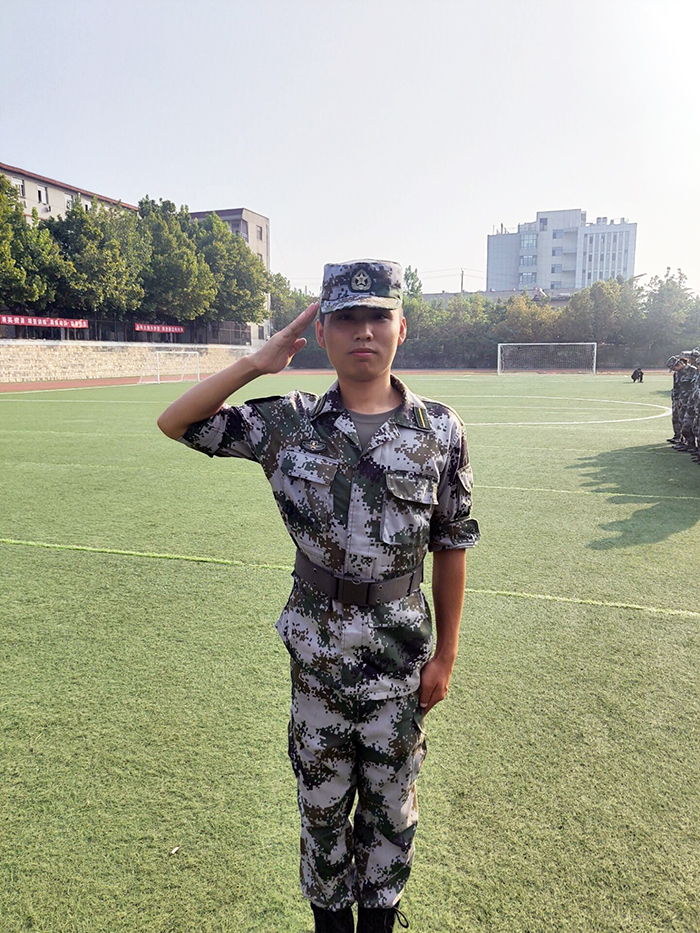 张进,计算机科学与技术19-1班班长,17年9月入伍,19年9月退伍,服役于中国人民解放军国防大学,多次完成大型仪仗活动,获得国家授予的“优秀义务兵”嘉奖。