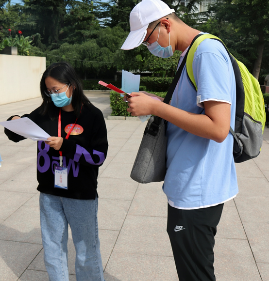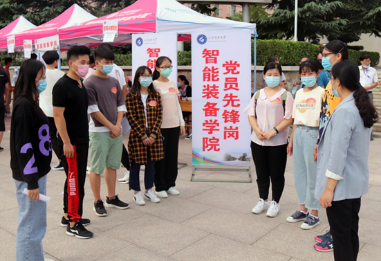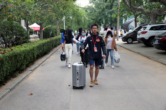 9月17日,胸前佩戴者红色“党员先锋队”标志的大学生党员在迎新场地各司其职,有条不紊地迎接新生,热情细心地为新生们答疑解惑,提醒大家要增强自我保护意识和安全防范意识,保护好人身、财产安全,严防网络诈骗,同时,党员们还向想要加入党组织的新同学详细介绍入学流程。办理入学手续、搬运行李、领取军训服装、宿舍整理被褥,新生报到的整个流程中随处可见大学生党员的身影。这群来回穿梭忙碌、与众不同的身影,组成了迎新现场一道亮丽的风景线。一张张热情的笑脸,一句句亲切的问候,一项项贴心的服务,让初来山东科技大学的新生感受到大家庭的温暖,向远道而来的家长和新生亮出“党员”这张名片。