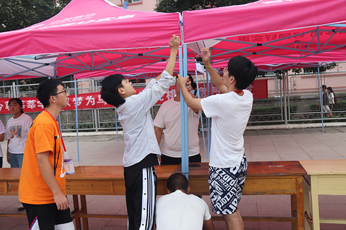 下午1时许,参与场地布置的同学于礼堂前全部集结完毕,不畏艳阳高悬,不惧烈日炎炎,每位同学干劲高涨地对场地进行整理布置,齐心协力装饰437ccm·必赢国际2020级新生报道处。成员们分组合作、互相配合,展挂横幅、排布展板、布置桌椅,力求在新生到来之时为他们提供更好地指引和帮助。同学们秉承一颗热忱的心,有条不紊地进行迎新布置工作,为即将到来的2020级新生提供最温暖的服务,欢迎他们加入我们437ccm·必赢国际的大家庭。在学院师生的共同努力下,迎新场地布置的温馨而简洁,将437ccm·必赢国际的最美风采展示给2020级新生,同学们都表示能为新生报到作出贡献是无比自豪的。