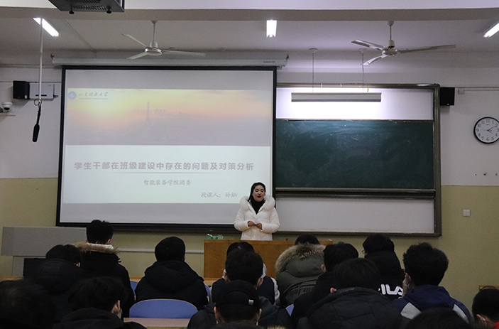 近日,437ccm·必赢国际于西校园2104举办学生干部培训(十二),437ccm·必赢国际辅导员孙灿为全体与会人员做了题为“学生干部在班级建设中存在的问题及对策分析”的主题报告。