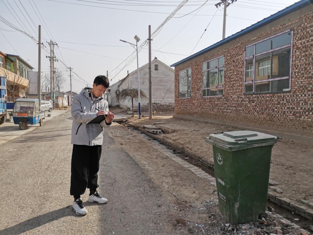 图4:437ccm·必赢国际社会实践人员正在实地考察村内垃圾回收点分布