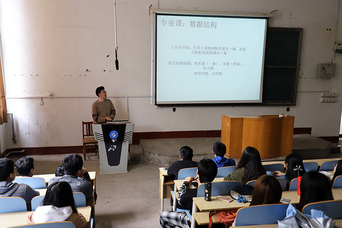 交流会上,8位研究生代表依次从考研方向选择、考试科目、学习方法、复试安排四方面进行经验分享。8位同学各自详细介绍报考过程的各种选择,总结学习数学、英语、政治和专业课的学习方法,强调了备考时的注意事项,分享备战考研的心路历程,鼓励同学们要有破釜沉舟的决心与毅力,及时调整学习状态,做好考研思想准备,关注与考研相关的信息,做到有技巧、有计划、有规律地学习。