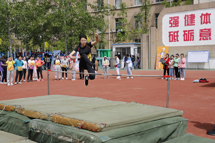 4月29日上午,校区运动会甲组女子跳高在西校园体育场举行。