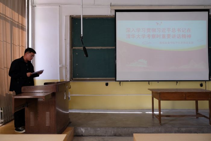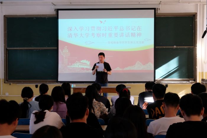 会上,各党支部书记传达了《中共教育部党组关于教育系统深入学习贯彻习近平总书记在清华大学考察时重要讲话精神的通知》文件精神,并带领同学们针对重点进行学习。感悟习近平总书记为我国高等教育发展和一流大学建设指明的前进方向及对广大青年学生提出的殷切期望,交流学习习近平总书记系列重要讲话精神的心得体会。会上,大家纷纷表示要牢记习近平总书记的殷殷嘱托,坚定理想信念,练就过硬本领,敢于担当,努力成为新时代有理想、有本领、有担当的青年。
