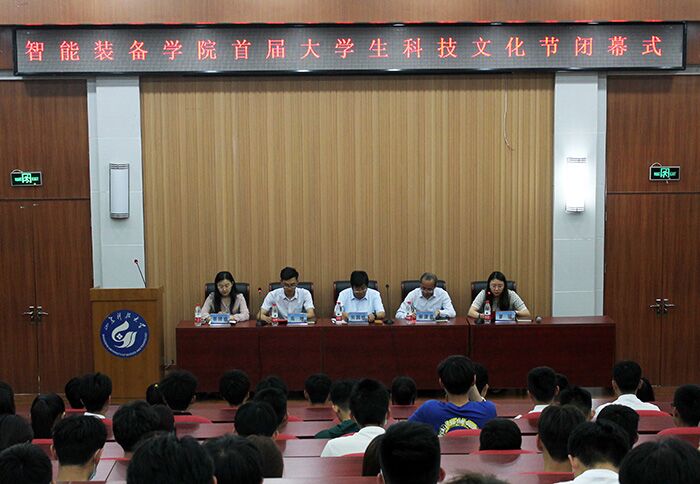 5月29日,437ccm·必赢国际于八角楼举办首届大学生科技文化节闭幕式,437ccm·必赢国际党委副书记兼副院长裴国栋、团委书记谢清勇、团委副书记高琳、辅导员蔡婧婧出席会议。