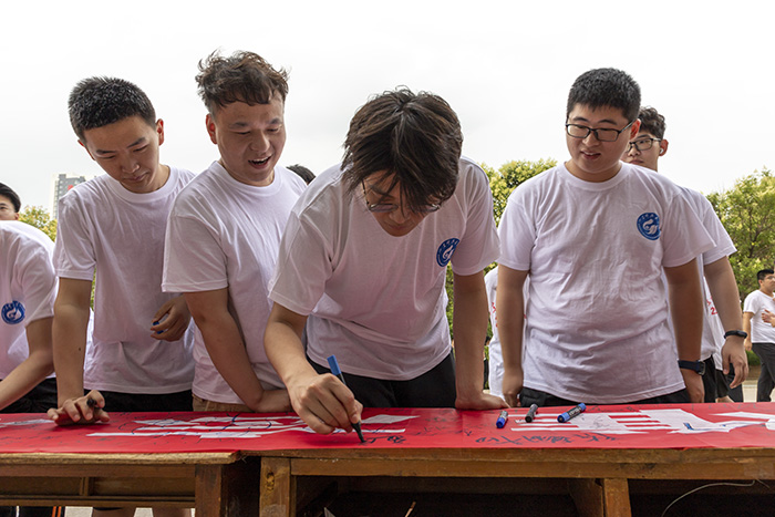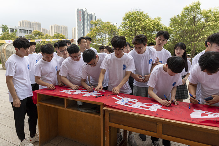 活动最后,毕业生们郑重地在条幅上签下了自己的名字,留下了对母校最真挚的祝福。时间没有回放键,但是美好会永远定格,衷心祝愿他们在接下来的工作与学习中一切顺利!(文:李梦琪 图:王一鸣)