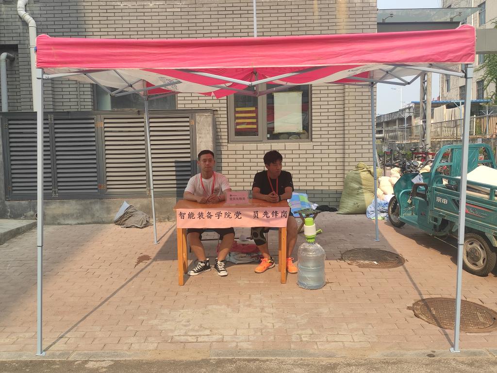 6月23-24日,学院分别在东、西校园毕业生宿舍楼下设立党员先锋岗,学生党员轮流值班,帮助离校的毕业生们搬运行李,为他们提供饮用水及其他的帮助,并对可能发生的违纪问题进行劝导。一桶水被喝完了,党员们立刻换上一桶新的,保证水的供应不短缺,给学哥学姐们力所能及的帮助。