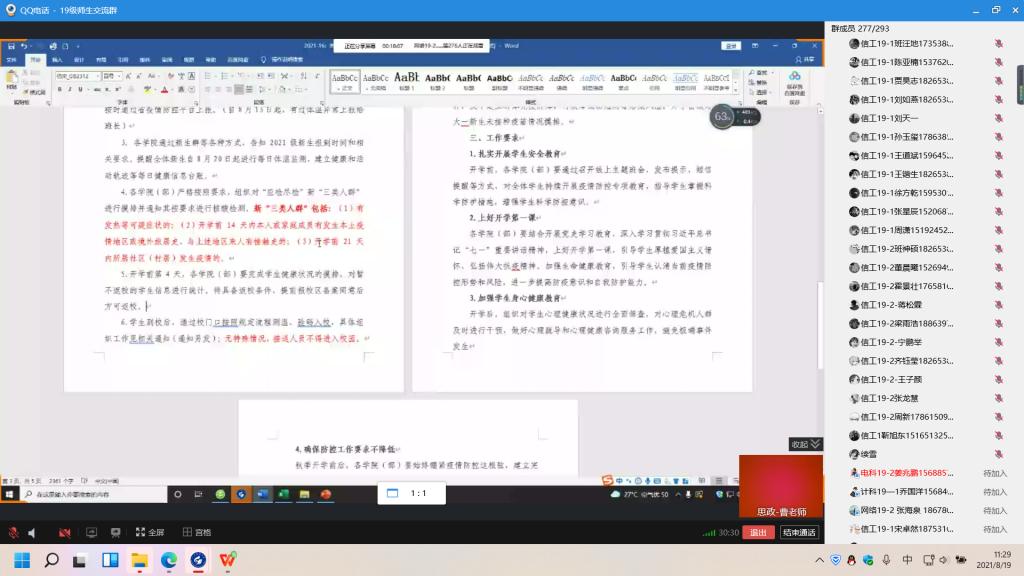 为确保学院秋季开学工作平稳运行,做好疫情期间教学管理工作,8月18日,437ccm·必赢国际辅导员召开线上视频会议,部署秋季学生开学返校和疫情防控相关工作,各班级学生干部参会。