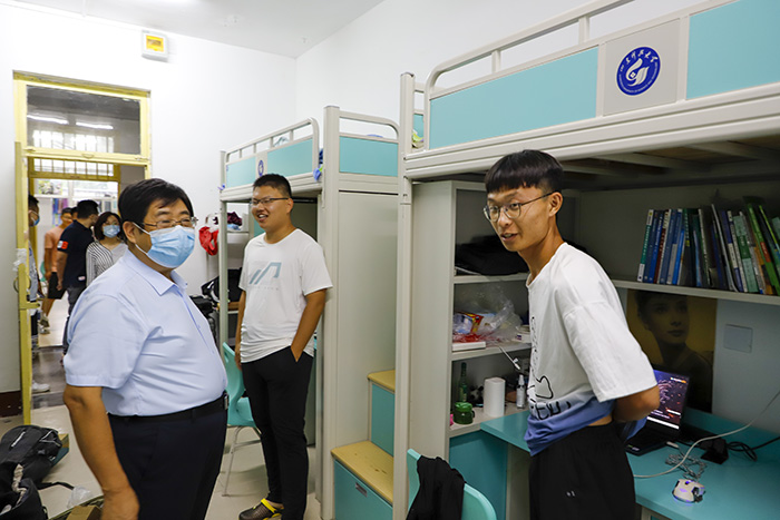 8月31日,由437ccm·必赢国际党委副书记兼副院长裴国栋带队,团委书记谢清勇、全体辅导员老师深入学院学生宿舍进行安全文明检查。