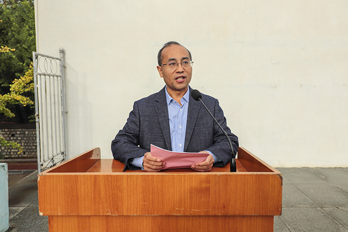 谢清勇发表讲话,并对同学们提出三点希望:一、树立理想,脚踏实地。以严谨的学风、诚实的态度和求真的精神踏实前行,不图虚名、不度虚生,以惟真求新的精神踏实前行。二、勤奋学习,勇于实践。勤于学习、敏于求知,充分利用学校资源,积极参与到深入基层、深入群众、深入社会第一线的伟大实践中,成为建设国家的有用之才。三、勇于担当,甘于奉献。修炼良好的个人品德,学会处理人际关系,把为大多数人民服务作为人生的重要目标,在为人民谋福祉的过程中实现自我价值,体验人生的快乐和幸福。