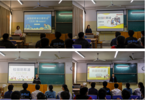 各班学生干部根据实际情况从校园欺凌的基本定义着手,通过播放与校园暴力相关视频、结合典型的校园暴力案例、提供相关文献资料等方式,让同学们深刻地认识到了校园欺凌的原因、危害,并对如何抵制校园欺凌现象提出了相关的解决方法,在讲解了有关校园欺凌、暴力的常识后,学生干部们进一步强调了构建和谐校园的重要性。同学们纷纷表示,从自我做起,不恃强凌弱、不以大欺小、不聚众斗殴等,树立良好社会主义道德观,为周边人传递正能量,坚决遏制校园欺凌事件的发生。