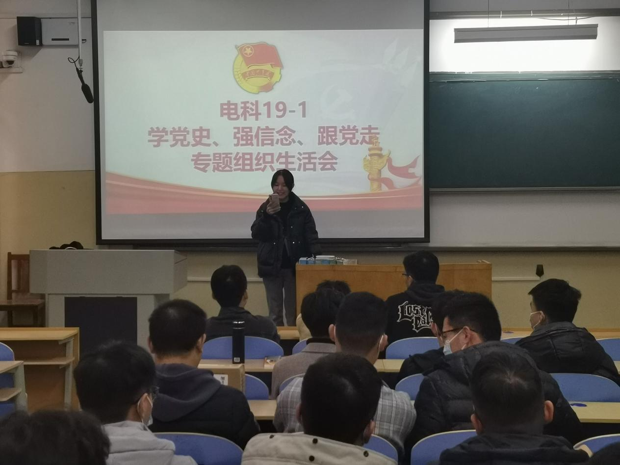 会议伊始,全体团员起立共唱团歌。团支书结合党史学习教育开展情况汇报团支部工作,团支部委员、其他团员结合学习收获、自身不足和改进方向等内容依次发言,其他团员对其进行评议,肯定成绩,指出不足。随后,开展团员先进性评价民主测评工作。
