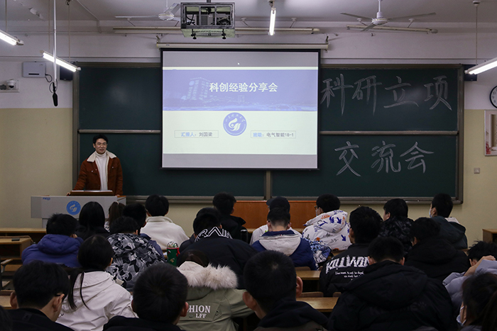 宣讲团成员刘国梁、王浩滢围绕科技创新竞赛、学习经验分享展开宣讲,结合自身竞赛和学习经历,对科技创新竞赛分类、论文发表、软著专利申请、科研立项等方面进行介绍,鼓励大家夯实基础理论知识,积极参加科技创新竞赛,多参与,多尝试,多总结,为未来学习、工作奠定扎实的基础。